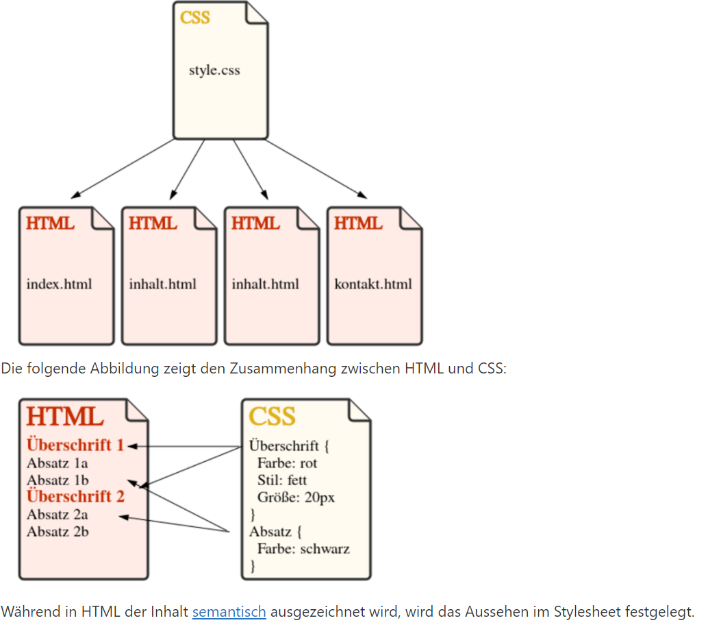 Die mystyle.css muss in diesem Beispiel im gleichen Ordner wie die HTML-Dateien gespeichert sein.
